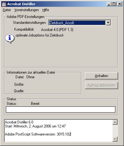 Meist ist der Pfad wie folgt: C:\Programme\Adobe\Adobe Acrobat 6.0\Distillr\Settings - Nun sollten die Zeitdruck-Joboptions im Distiller, bzw. in den PDF-Konvertierungseinstellungen vorhanden sein.